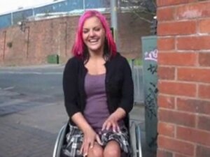Leah Caprice na wózku inwalidzkim w Wielkiej Brytanii, na pokaz i na zewnątrz. Leah Caprice w wózku inwalidzkim na pokaz i na zewnątrz