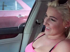 Blondynka ślicznotka duszy nieznajomych dużym kutasem publicznie, Seksowna blondynka autostopowiczka Nikky Dream ssie nieznajomego dużego kutasa w swoim samochodzie, gdy zjeżdża z publicznych dróg, a potem wkłada kutasa do cipki z majtkami na boku