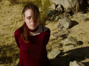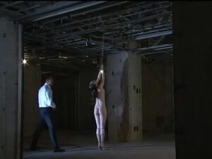 Cycatka niewolnica jest zamknięta na ścianie. Brunetka z dużymi cyckami, Ariel X, jest zakuta w kajdany i zamknięta w metalowym urządzeniu na drewnianej ścianie, a potem biczowana po tyłku w pozycji na pieska