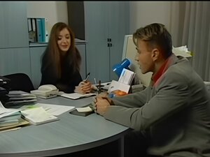Wytatuowany koleś powitany na castingu przez napaloną blond agentkę w czarnych pończochach. Ssała jego wielkiego kutasa, potem jej cipka była pieprzona, aż do wytrysku na twarz