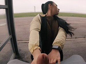 Brunetka cutie daje ryzykowne robienie loda i ręczna robota w publiźnie-POV. Brunetka jest na tyle odważna, by ssać i szarpać kutasa na publicznym przystanku autobusowym. Seksowna czarna Lynn nie boi się zostać złapana i sprawia, że facet spuszcza się nap