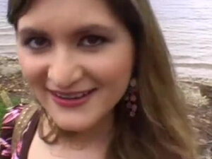 Rosyjska brunetka sojusznikiem najpierw głęboko połyka. Duże cycki rosyjska laska Ally dostaje podryw w jeziorze i jest pieprzona na zewnątrz