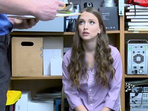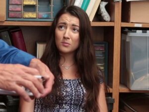 Mała cycata blondynka ukrywa przedmiot w swoich ubraniach, ale oficer sklepu je odzyskuje.Oficer składa raport, ale wcześniej daje jej szansę.Wyciąga swojego penisa i każe jej go ssać.Potem na stole je i rucha jej cipkę