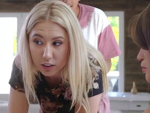 Blondynka zabiera swojego najlepszego kumpla do domu, żeby się z nim uczyć. Jej przyrodni brat wchodzi do niej i zaczyna ją pieprzyć od tyłu. Facet podąża za swoją przyrodnią siostrą i jej przyjaciółką do jej pokoju. Obie robią mu loda. Potem facet pieprz