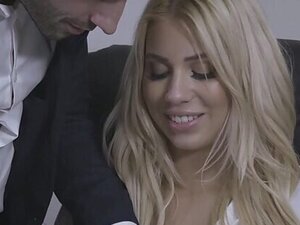 Klarisa Leone w Seksownej sekretarce z seksualnymi przysługami, Gorąca jak cholera, blond sekretarka Klarisa nie ma problemu z uzyskaniem stanowiska w żadnej firmie w mieście! Bo nie tylko jest gotowa do pracy do późna, ale też wymiotuje jak zwykła dziwka