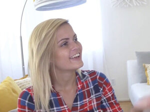 Zapraszając Sarah Vandella i wielką, ogromną rakietę miłości. Kusząca blondynka, śliczna dziewczyna Sarah Vandella, jest palcowana