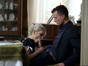 Cycatka robi loda naprawiaczowi i dostaje wielki wytrysk do ust. Rudowłosa dziewczyna z dużymi cyckami klęka przed naprawiaczem i zaczyna ssać jego kutasa. Robi wszystko, co w jej mocy i wkrótce dostaje mnóstwo spermy do ust