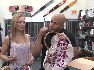 Zdesperowana kelnerka próbowała zastawić fałszywy portfel, ale Lombard zauważył, że to fałszywe, że potrzebowała pieniędzy na czynsz i była gotowa zrobić wszystko, aby zarobić pieniądze oboje poszli na zaplecze i tam zaczęła go ssać, a potem zaciska