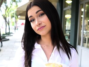 Mała brunetka Carolina Abril rozkłada nogi dla dużego kutasa do zastrzyku