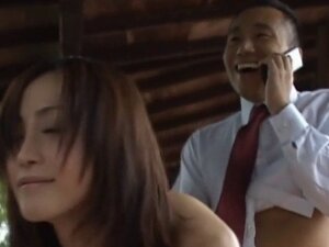 Japońska gwiazda porno dostaje swoją kąpielówkę rozerwaną od 3 napalonych facetów - Haruka Megumi